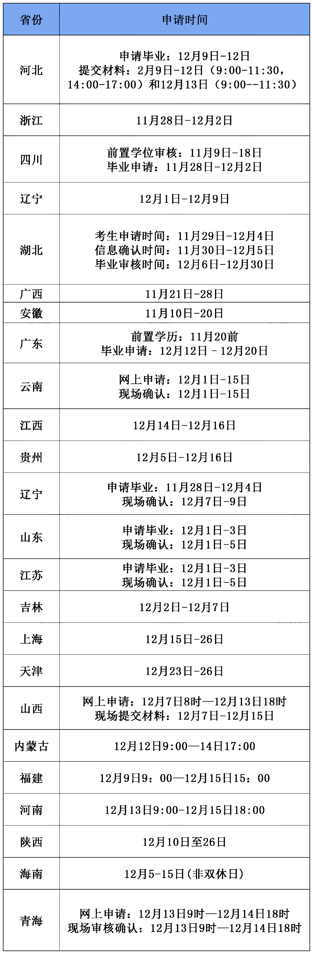 此外,目前也正是毕业季,毕业申请正当时!小聚给大家整理了各省份毕业申请的时间,同学们按时申请毕业!
